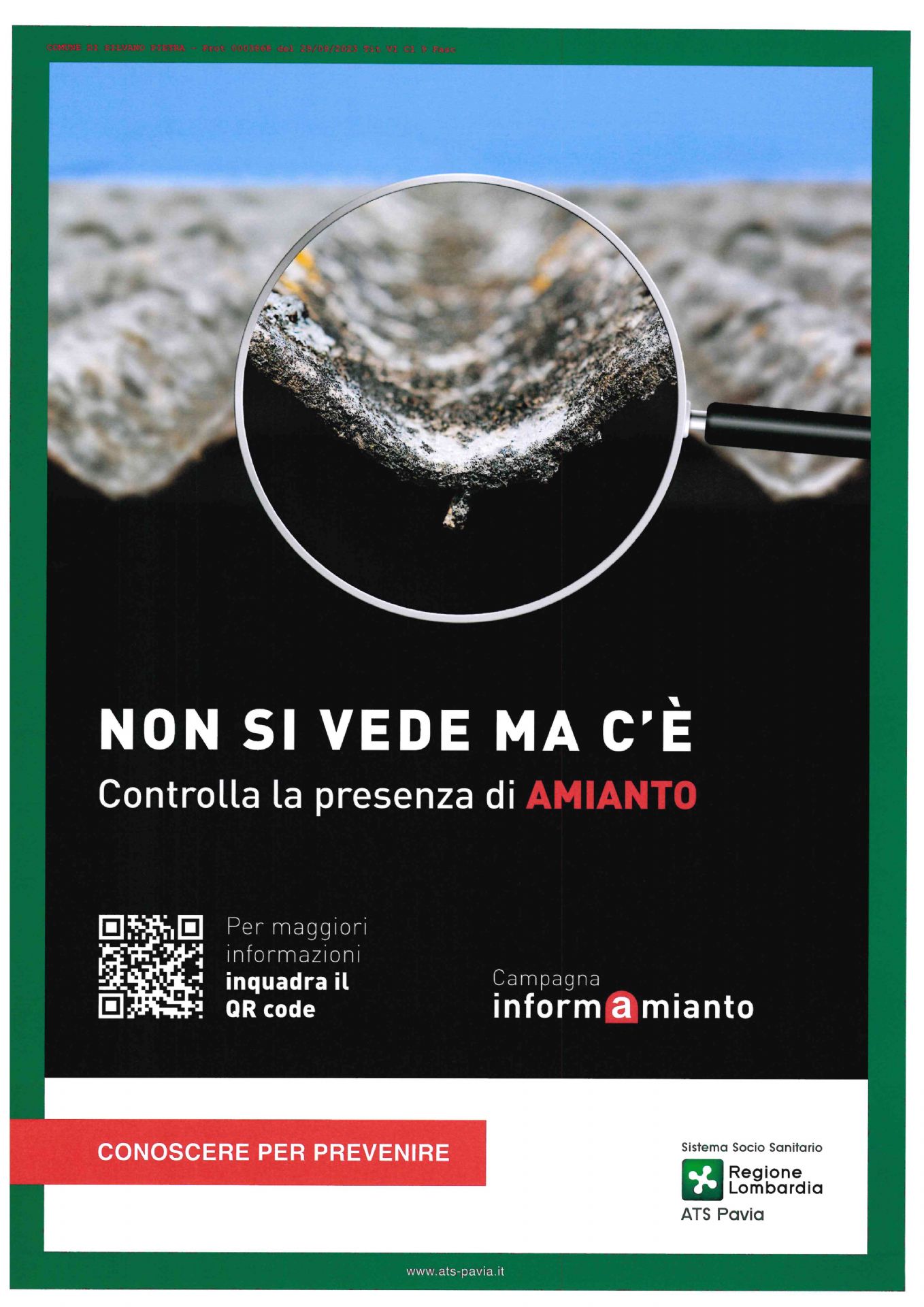 Il Dipartimento di Igiene e Prevenzione Sanitaria dell'ATS di Pavia ha ritenuto opportuno cercare di contribuire alla diffusione presso la cittadinanza delle informazioni relative alla gestione dei manufatti contenenti amianto realizzando una campagna informativa dal titolo InformAMIANTO